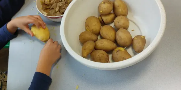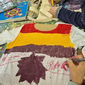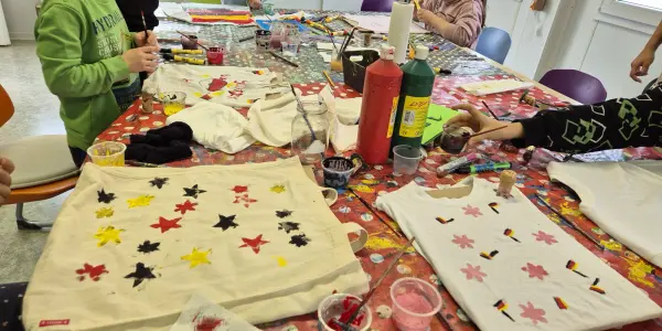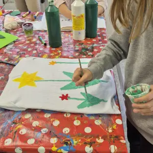 Wir bemalen Stoffe und haben Spaß beim Kartoffeldruck